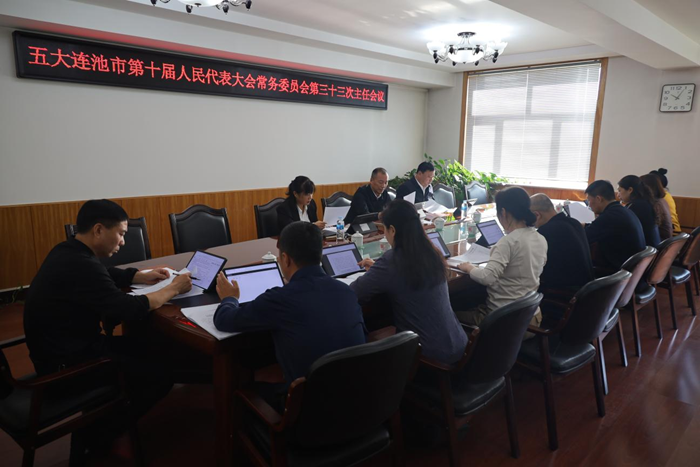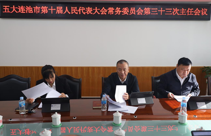 10月22日,五大连池市第十届人民代表大会常务委员会召开第三十三次主任会议。市人大常委会主任吴晓光,市人大常委会副主任邓勇、刘丽华出席会议。市人大各专门委员会主任委员、市人大常委会各工作机构负责人及机关全体干部职工列席会议。吴晓光主持会议。