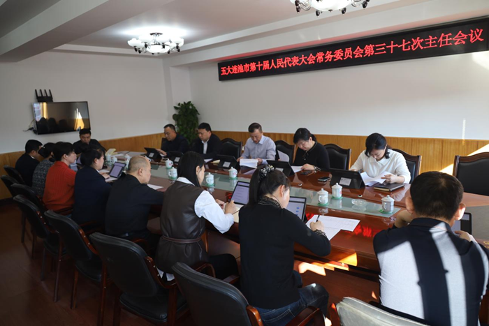 2月26日,五大连池市第十届人民代表大会常务委员会召开第三十七次主任会议。市人大常委会主任吴晓光,市人大常委会副主任邓勇、刘丽华,市人大常委会副主任侯选人王宁、马云波出席会议。市人大各专门委员会主任委员、市人大常委会各工作机构负责人及机关全体干部职工列席会议。吴晓光主持会议。